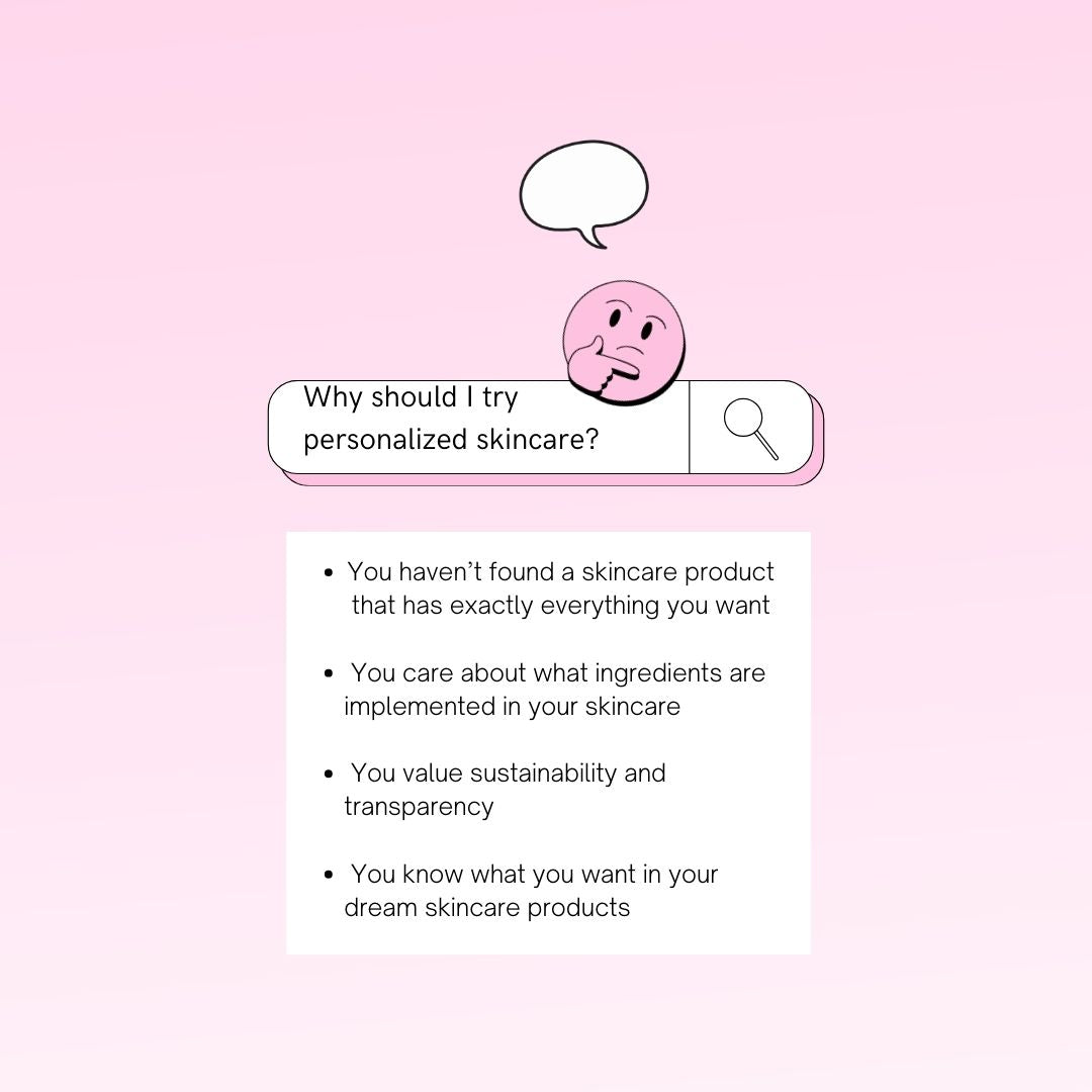Discover the beauty of customized products tailored precisely to your specific needs. Our team specializes in formulating unique solutions that address a variety of skin concerns. By considering your: individual skin goals, lifestyle, environment, and ingredient preferences, we are able to create the formula of your dreams.